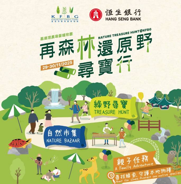 由嘉道理農場暨植物園主辦、恒生銀行全力支持的第五屆「再森林・還原野」尋寶行2025,將於今年11月載譽歸來。這不只是一場活動,更是一趟喚醒感官的旅程。當你走進山林間挑戰全新設計的20個關卡,每個問題都像一把鑰匙,開啟你對自然認知的新維度。那些隱藏在葉脈間、泥土裡、鳥鳴中的生態寶藏,正等待著被你發現。