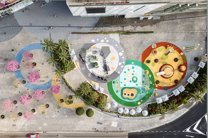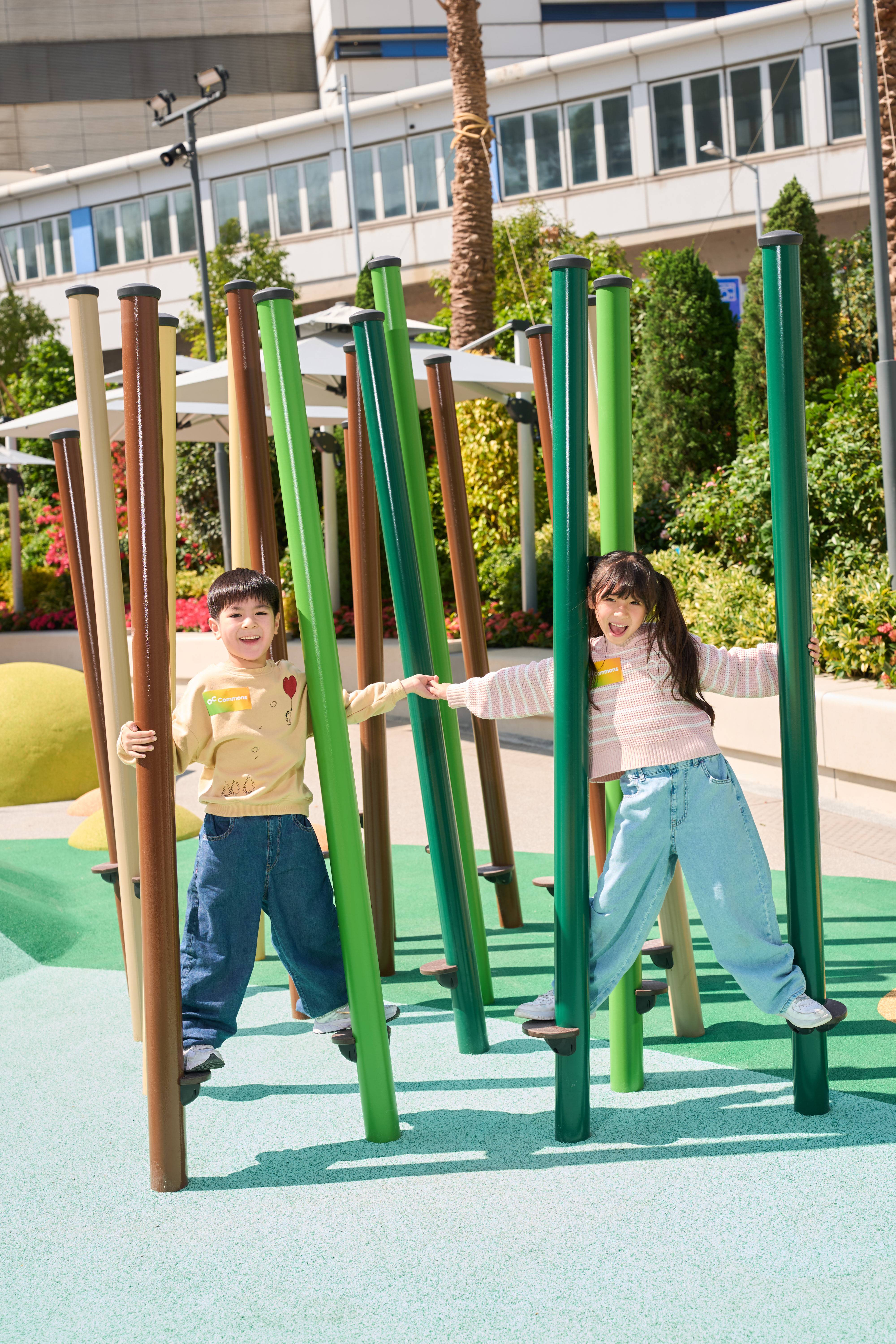 佔地15,000平方呎,OC Commons「五環遊樂園」以運動盛會標誌性五環作為創作概念,建成「動力潛能」、「感知啟發」、「動感爆發」三大主題區域組成的遊樂場,共設13組結合共融、好玩、多元兼安全元素的遊樂設施。由動至感的全面體驗,讓小朋友於日常玩樂之中循序漸進開發體能、心理、社交、情感、靈性方面的成長,達至全人發展。三個區域各有特色,從熱身準備到感知激活,再到盡情放電,為小朋友提供完整而豐富的遊樂體驗。每個區域都經過精心設計,確保安全性的同時,最大化激發小朋友的潛能和創意思維。