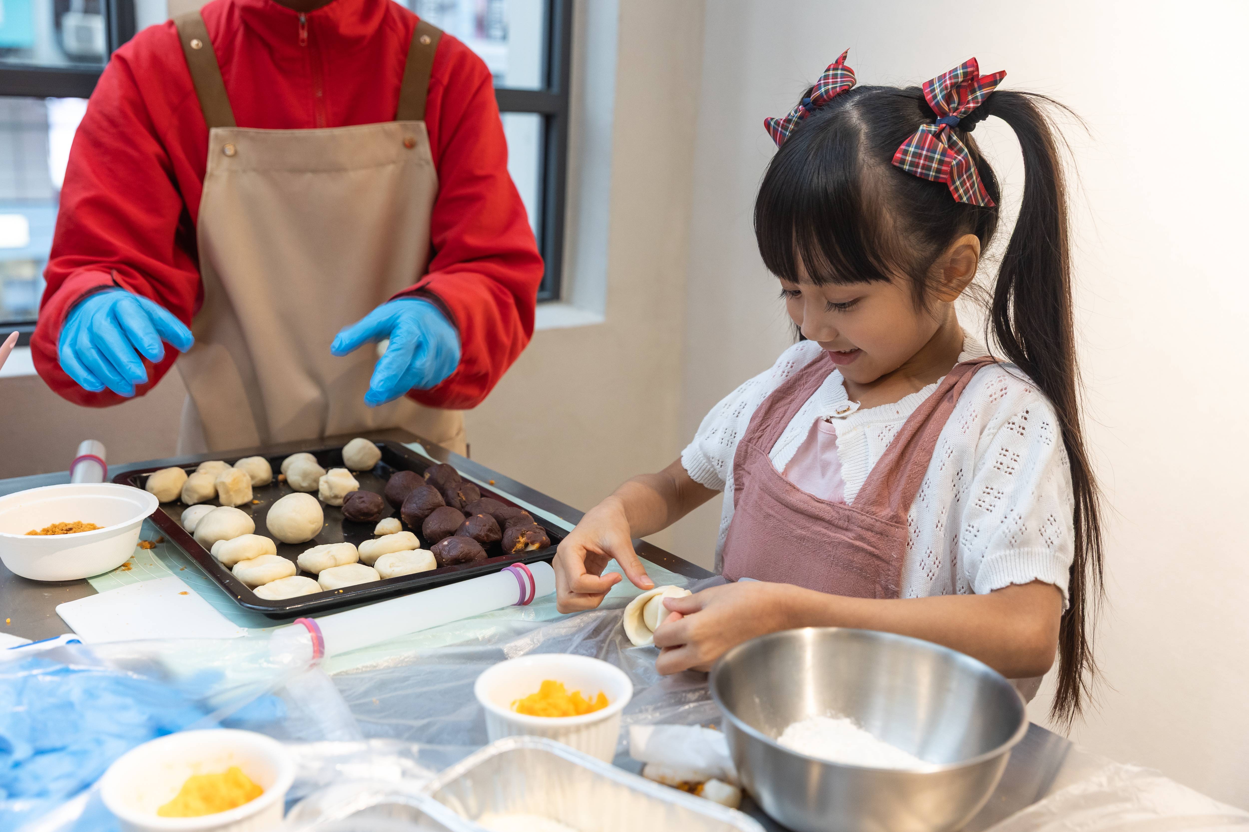 所有課程由專業師傅指導,從揉麵、包餡到烘焗,讓親子享受完整的製餅體驗,並可即場試食自家作品。課程定期更新,適合不同年齡層的孩子參與。