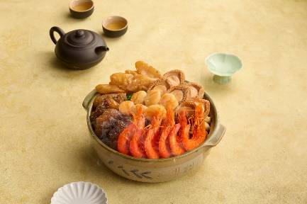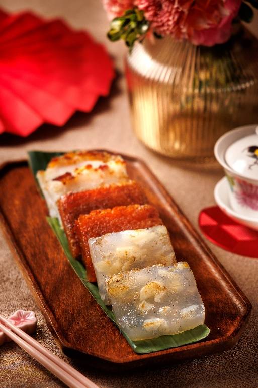 金殿海味蘿蔔糕 」,嚴選的上乘食材包括香甜鮮嫩的本地有機蘿蔔、土魷與臘腸日本瑤柱及銀魚仔等上乘食材;而「九製陳皮桂花蓮藕糕」以本地蓮藕配搭甘草九製陳皮及桂花,清甜生津。賓客更可選購矜貴外賣盆菜,嚴選澳洲海參、南非吉品鮑魚等十八款頂級食材,象徵盆滿缽滿。酒店同步推出賀年禮品、撈起及套餐,由即日起於JW網上商店接受預訂,與摯親共享如意豐足的新春滋味。