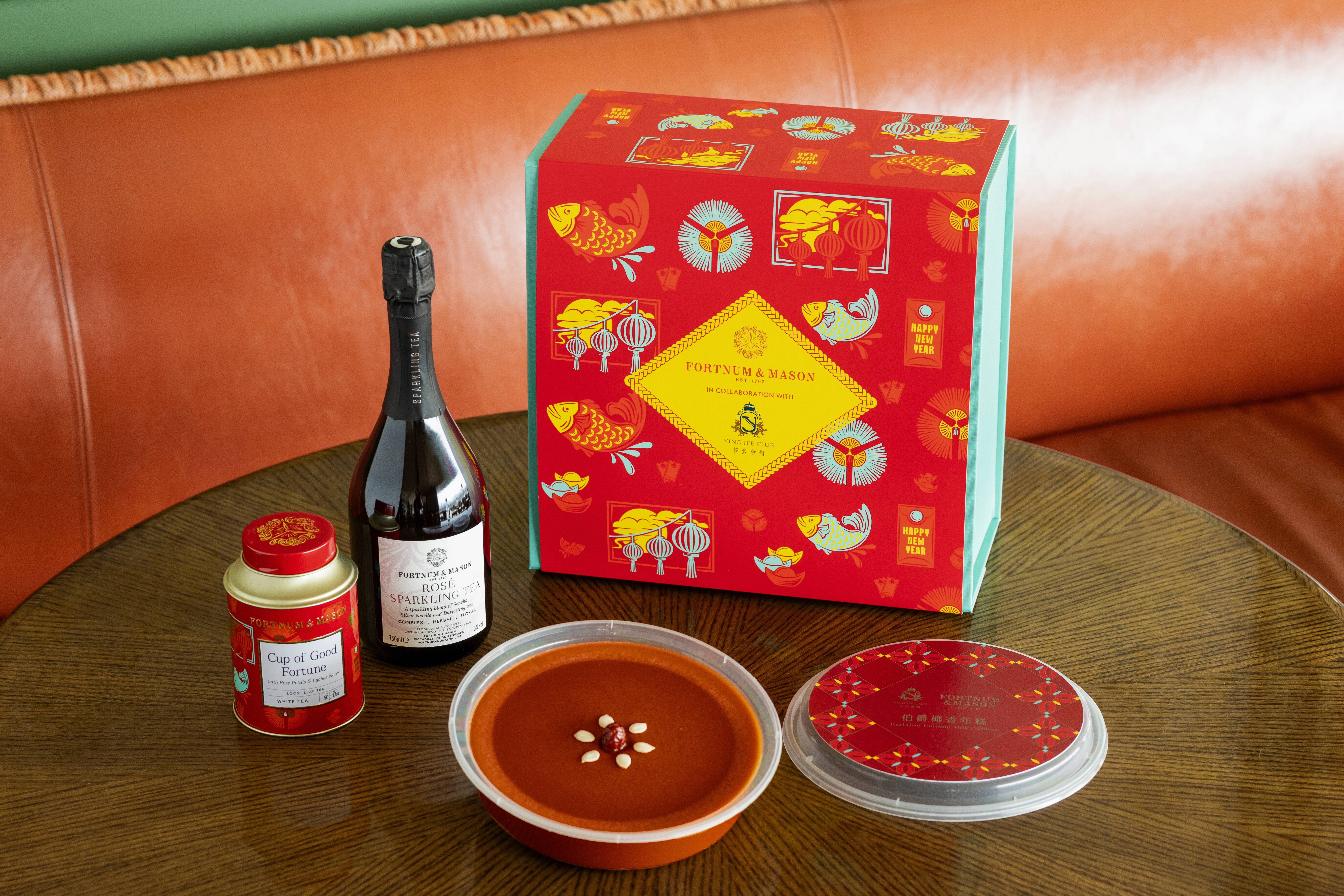 米芝蓮二星粵菜食府營致會館首度與英國百年茶葉品牌Fortnum & Mason合作,推出限定「伯爵椰香年糕」($238),嚴選經典伯爵茶融入香滑椰汁。另有招牌「瑤柱臘味蘿蔔糕」($298),精選上等瑤柱、甘香臘腸製作。限量30套的尊貴農曆賀年禮盒($498)更配搭玫瑰氣泡茶及獨家散裝茶葉。