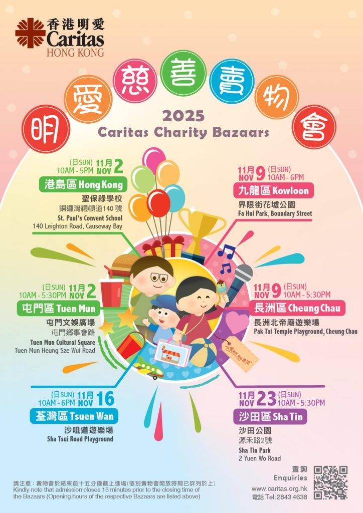 明愛慈善賣物會2025 | 每年,香港明愛舉辦的慈善賣物會都為社會帶來愛心與溫暖,是一個深受市民喜愛的年度籌款和福傳活動。2025年11月,多場慈善賣物會將於香港各區舉行,所有有興趣的家長記得帶小朋友去支持!