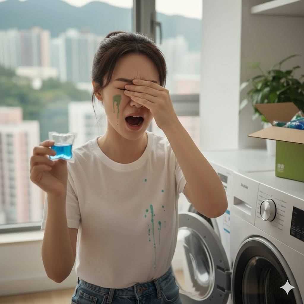2. 黏連膠囊應即棄:若發現洗衣珠已黏在一起,代表其外膜已經受損,內部可能處於不穩定狀態。即使覺得浪費,也應整包棄置,切勿嘗試強行分開。