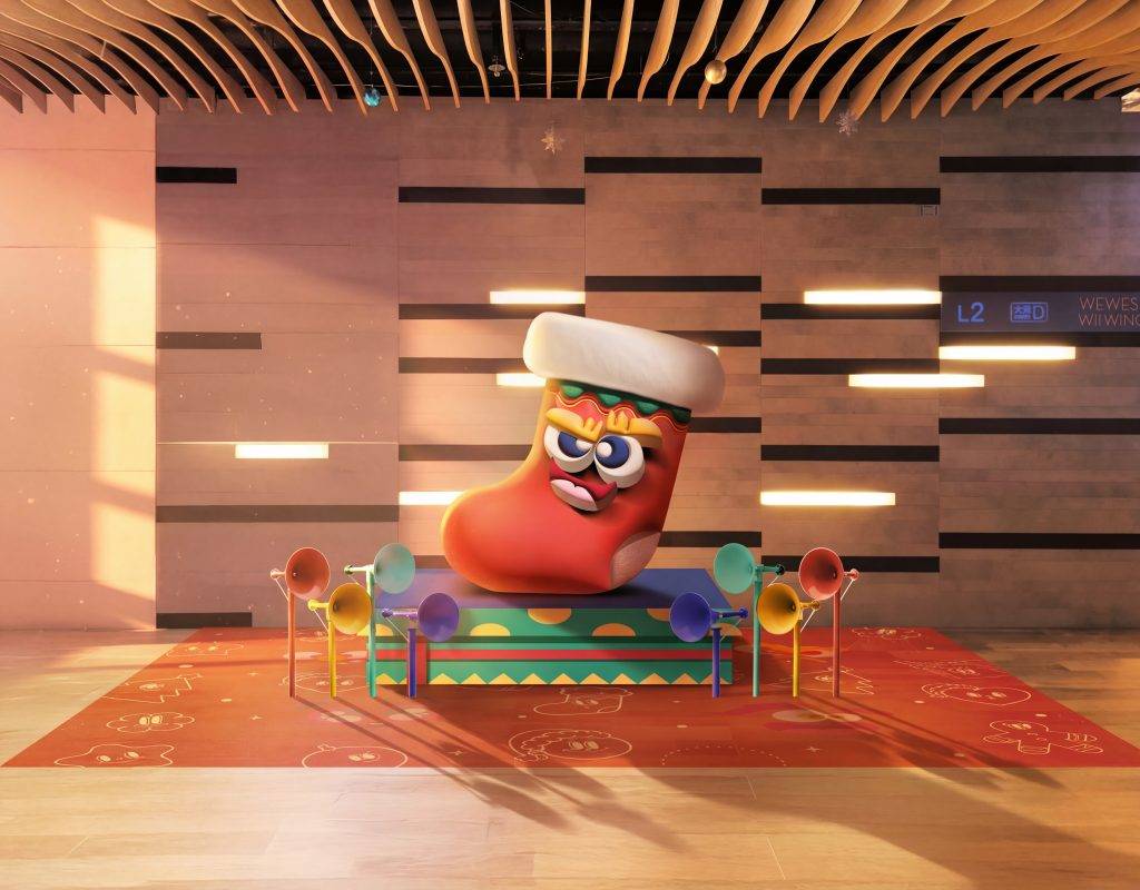 在2樓西翼的PEEKABOO店門口,藏著一隻外表可愛、內有玄機的「Wishful Sock」。它被譽為聖誕老人的願望精靈,專門蒐集人們的願望,並將其轉化為驚喜。與它互動,或許能開啟一段收到神秘禮物的美妙旅程。