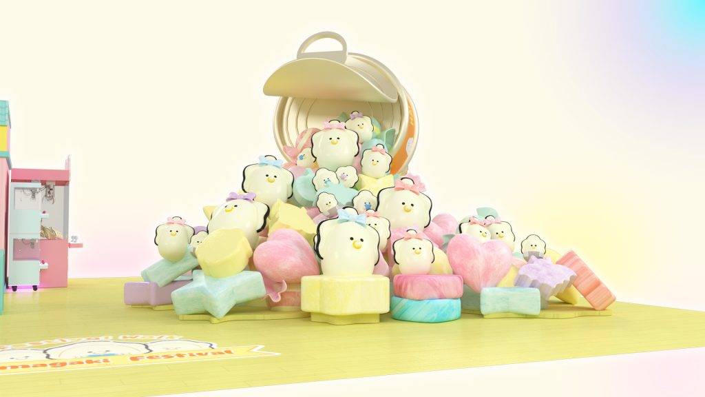 展覽以「生蠔BB和食屋」為主題,打造沉浸式夢幻樂園。最吸睛的莫過於4.2米高巨型生蠔罐頭,無數生蠔BB公仔與繽紛糖果從罐中傾瀉而下,形成震撼視覺效果,瞬間成為打卡焦點。一旁的「和食屋」則以粉嫩糖果色系設計,隱藏萬聖節元素如粉紅小南瓜與節日糖果,巧妙融合可愛與節慶氛圍,無論是親子或閨蜜遊玩,都能拍出獨特照片。