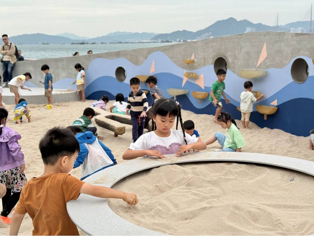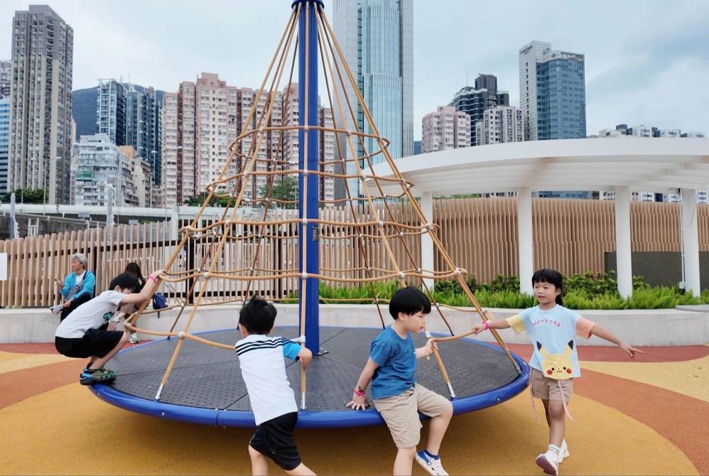 公園還設有維港海濱首個嬉水嬉沙區,讓小朋友在欣賞美景的同時,享受獨特的觸感遊戲,突破傳統遊樂場的感官限制。家長馬太分享,嬉沙區能激發小朋友感官,園內完善的衞生設施便於清洗,設計貼心。她亦讚賞公園景觀開揚,讓家長在看顧子女時,能乘着涼風欣賞海景,倍感放鬆。