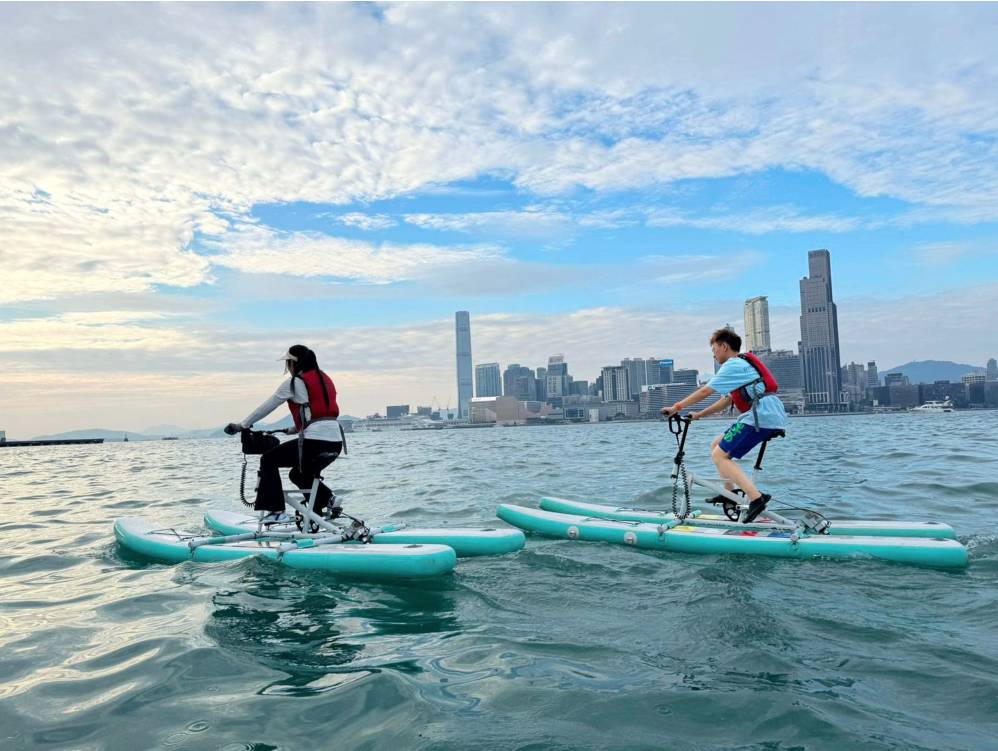 灣仔海濱則透過「海洋新幹線水上活動中心」提供多元親水體驗。發展局項目經理陳麗娟介紹,中心設有分級課程和特色活動,如維港夜光遊、寵物同遊等,並舉辦大型賽事。參與水上單車體驗的周同學分享,在維港美景下暢玩,即使新手也能在教練指導下快速掌握技巧,獲得成就感。未來,中心將在馬會資助下展開優化工程,持續推動海濱發展。
