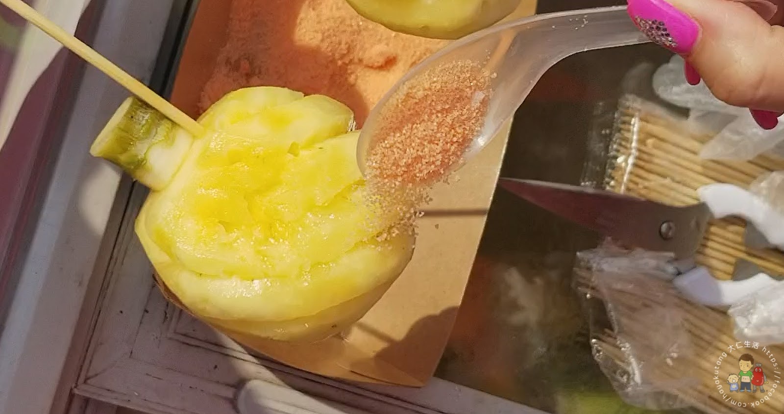 最後, 我們買了2粒泰國菠蘿仔($20/各), 店員:「你落少少鹽啦, 我哋自己炒過架, 鹹鹹地好食D」