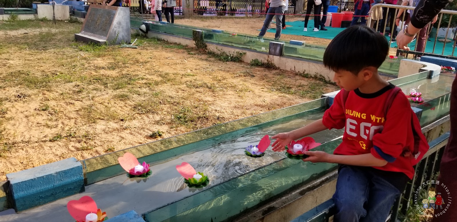寫過願望, SY興奮得即時跑到「許願池」放蓮花, 我家的小朋友還是十分愛玩水.