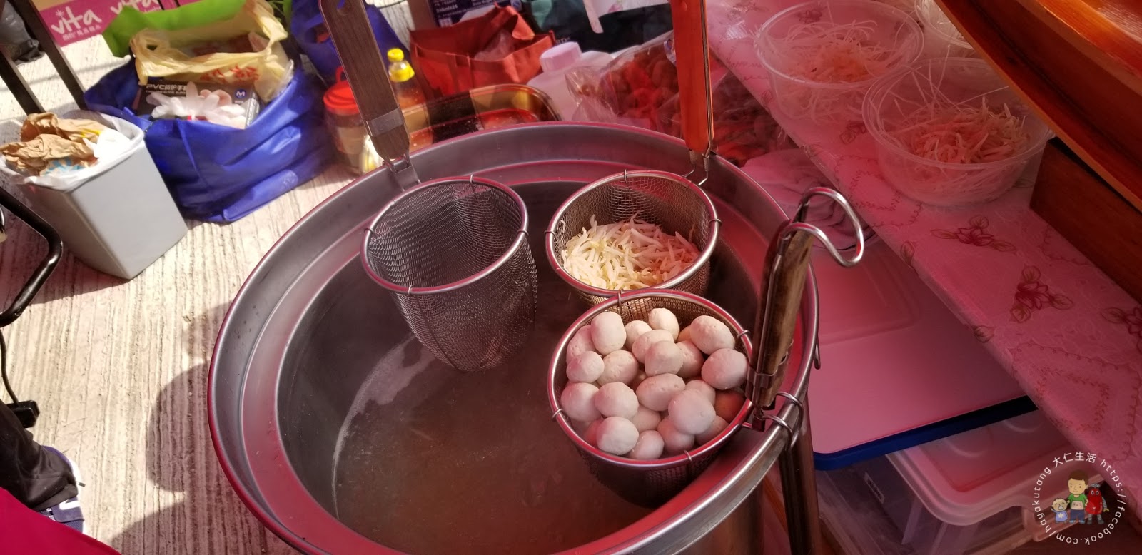我對SY說:「E度都有船麵($30)食喎, 仲有4粒丸, 一舊豬頸肉, 一個炸豬皮, 抵過旺角好多喎」