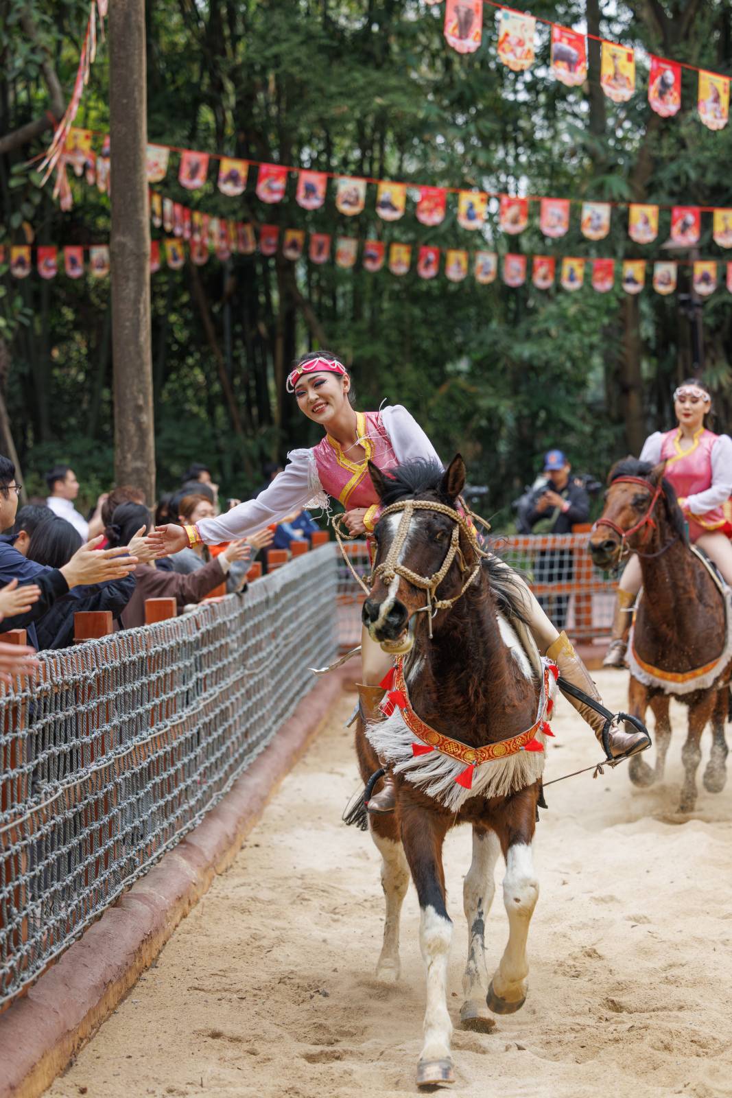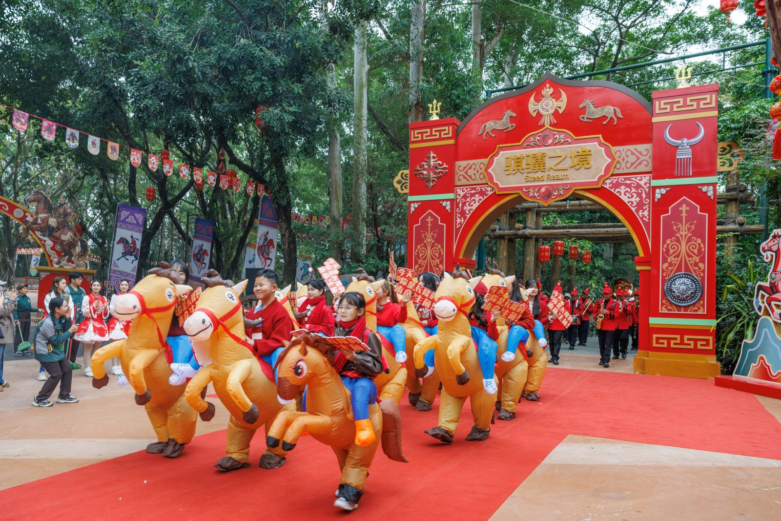 開園當天的「加馬方陣」巡遊成為全場焦點,各種馬匹整齊亮相,場面壯觀。同步推出的「騎士劇場」每日上演高品質馬術表演,騎手與馬匹默契配合。