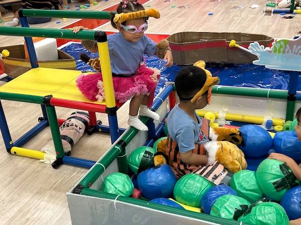 玩具圖書館的設計處處體現以兒童為本的理念。專業的遊戲工作員精心規劃了主題空間、精選書籍與遊戲環節,並定期更新內容,確保每次到訪都有新驚喜。本次「動物奧運會」主題活動,不僅以繪本故事為基礎,更將書中情節轉化為實體遊戲體驗,讓孩子們在模仿大自然的舒適環境中,親身參與跳水、射擊、跨欄等賽事,甚至能發掘更多書中未盡的運動創意。