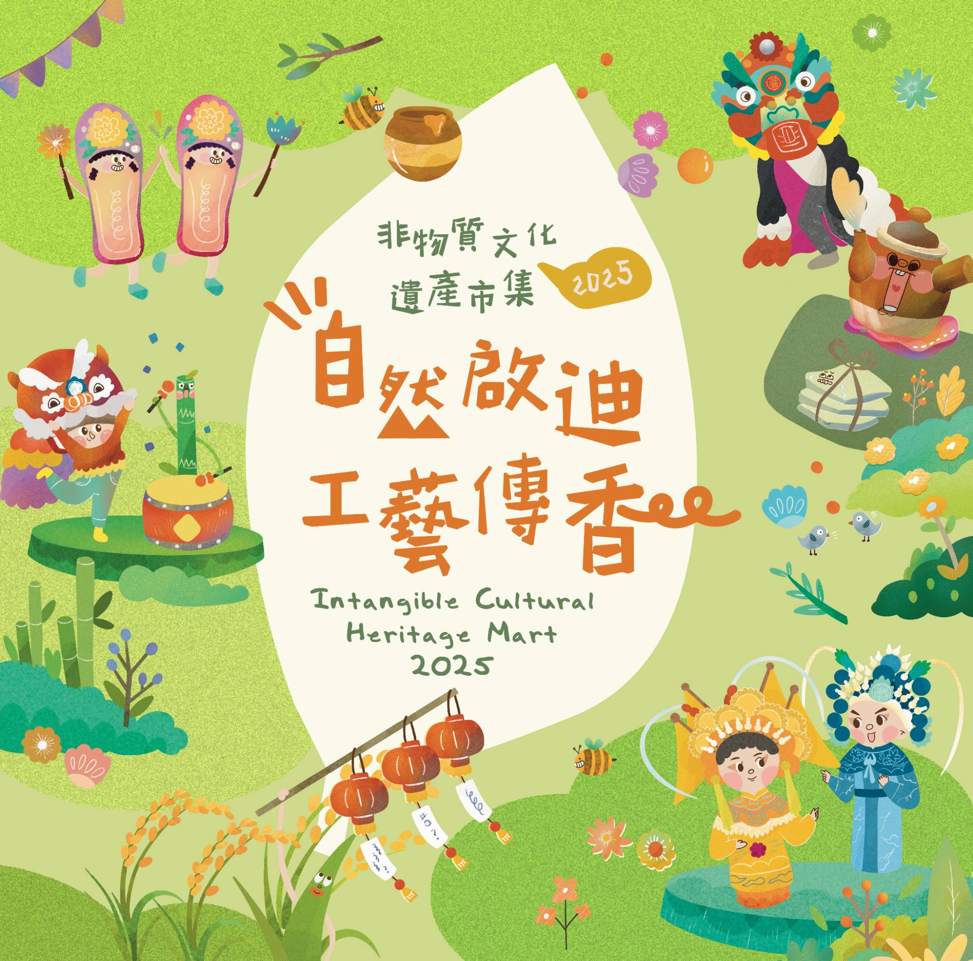 活動內容:非物質文化遺產市集2025以「自然啟迪 工藝傳香」為主題,邀請大家探索非物質文化遺產傳承人如何從大自然汲取靈感,融合工藝智慧,發展出中草藥知識、涼茶、蜂蜜製作等多項非遺技藝。傳統工藝創作亦深受自然美態啟發,參加者可於活動中欣賞並認識繡花鞋、廣彩等精緻手藝,感受自然之美如何融入創作之中。