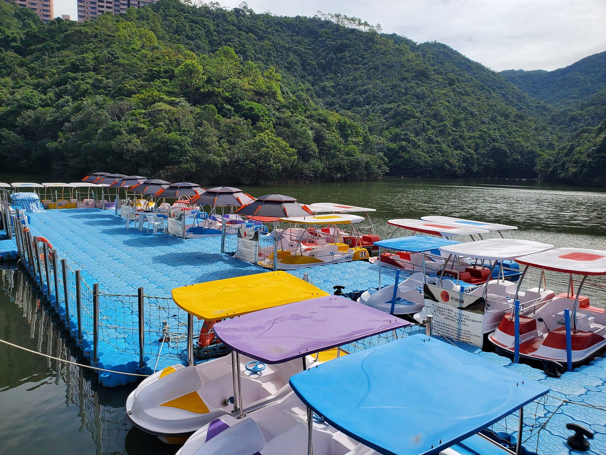 原來這項秘點玩樂服務是由黃泥涌水塘花園茶座提供。茶座早年曾停業,後於2024年9月重開,除了恢復水上單車服務,更可於船上歎High Tea點餐。茶座位於灣仔大潭水塘道黃泥涌水塘公園內,營業時間為星期二至五11am-6pm,星期六、日及公眾假期9am-6pm,星期一休息。