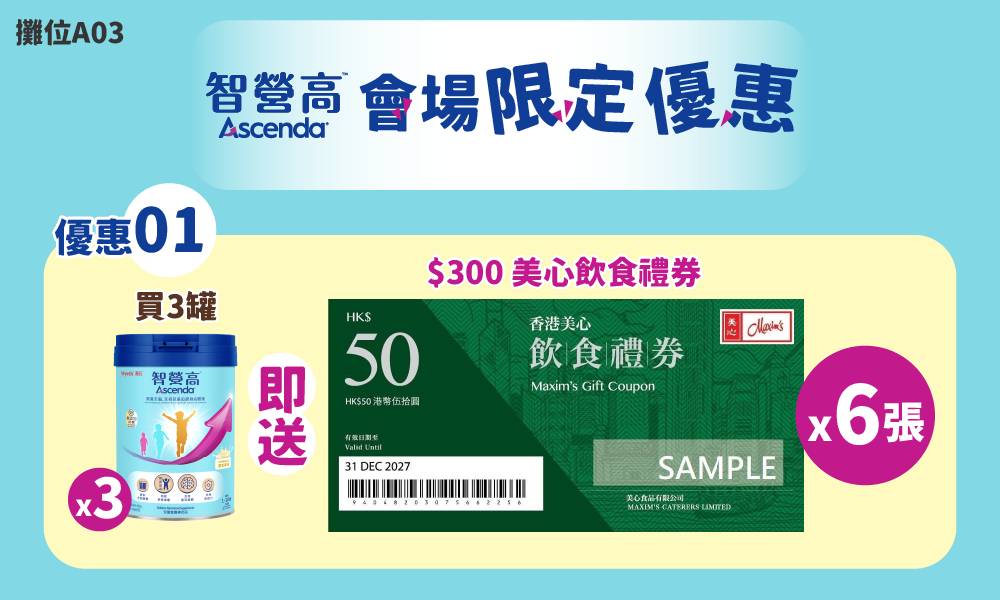 買3罐,即送$300美心飲食禮券(每張$50,共6張)