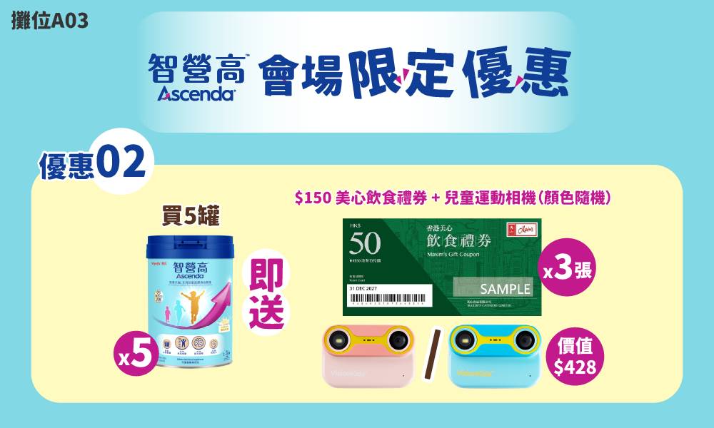 買5罐,即送$150美心飲食禮券 + 兒童運動相機(顏色隨機,價值$428)