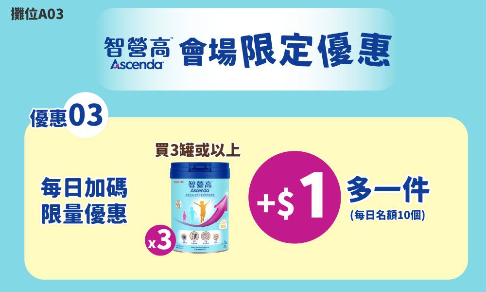 每日限量10個名額!購買智營高™ 3罐或以上,加$1即額外多送1罐智營高™,先到先得,額滿即止。