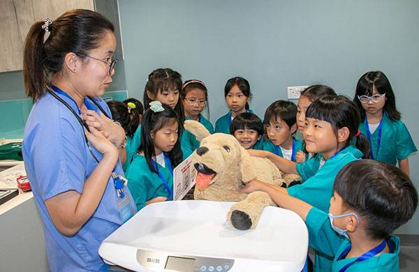 除了虛擬體驗,夏令營更安排小朋友參觀獸醫診所,由專業獸醫講解動物急救和健康護理的重要性。高小組的學生更可學習狗狗身體檢查步驟,親身體驗獸醫的日常工作。