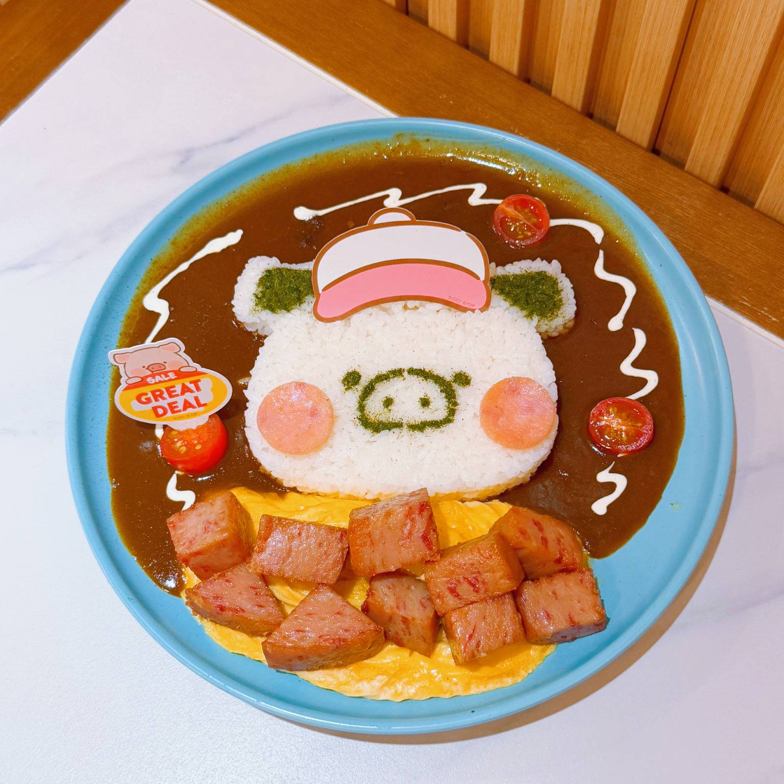 • 豚圓滿屋餐肉蛋包飯(HK$129):選用厚切午餐肉丁配滑嫩蛋皮,中央有LuLu豬臉蛋造型