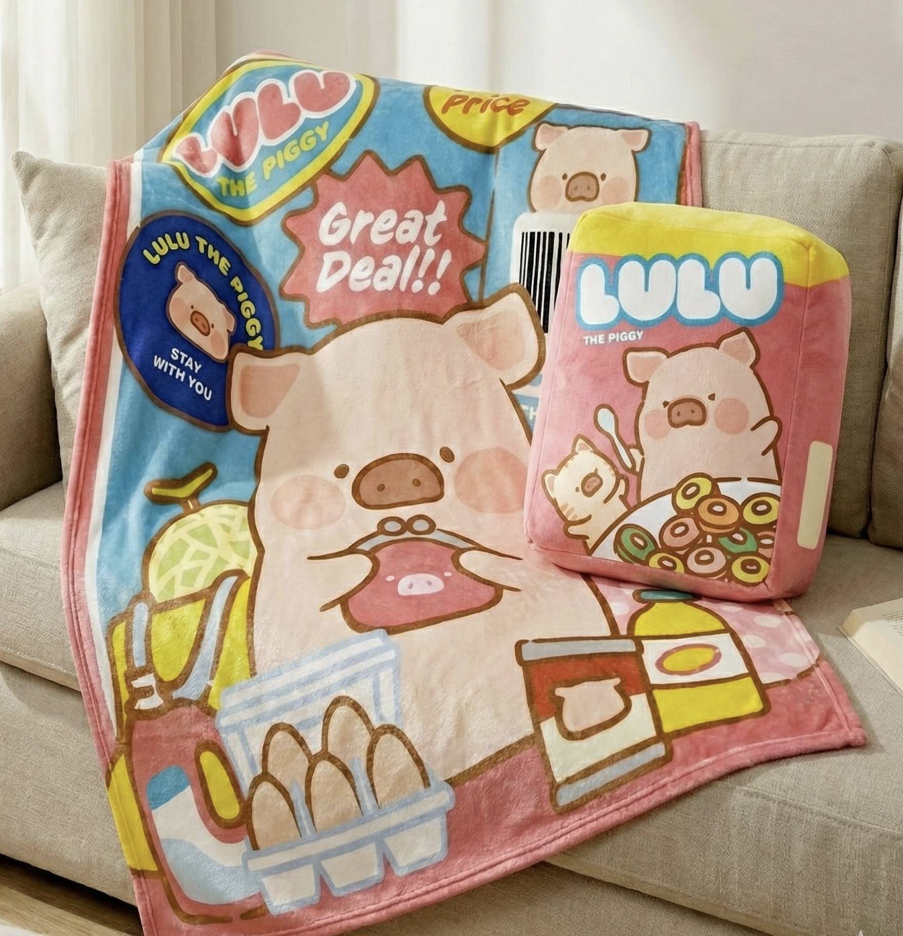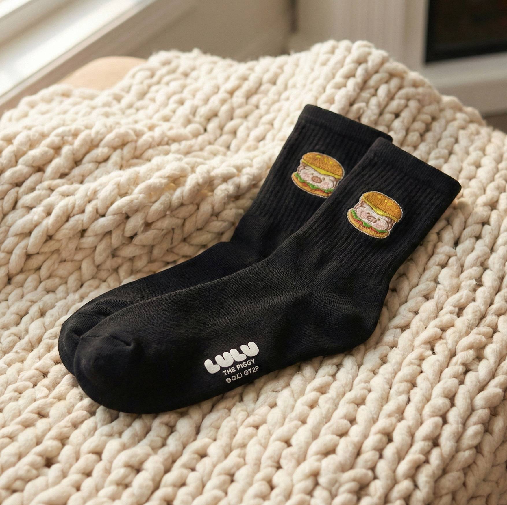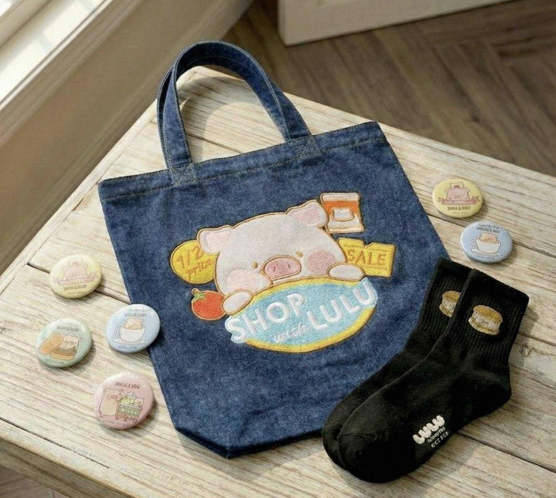 餐廳亦有多款限定周邊商品發售,包括超市系列毛絨盲盒、毛毯抱枕、棉質繡花襪、牛仔繡花Tote Bag等,讓粉絲可以將LuLu豬的可愛帶回家。