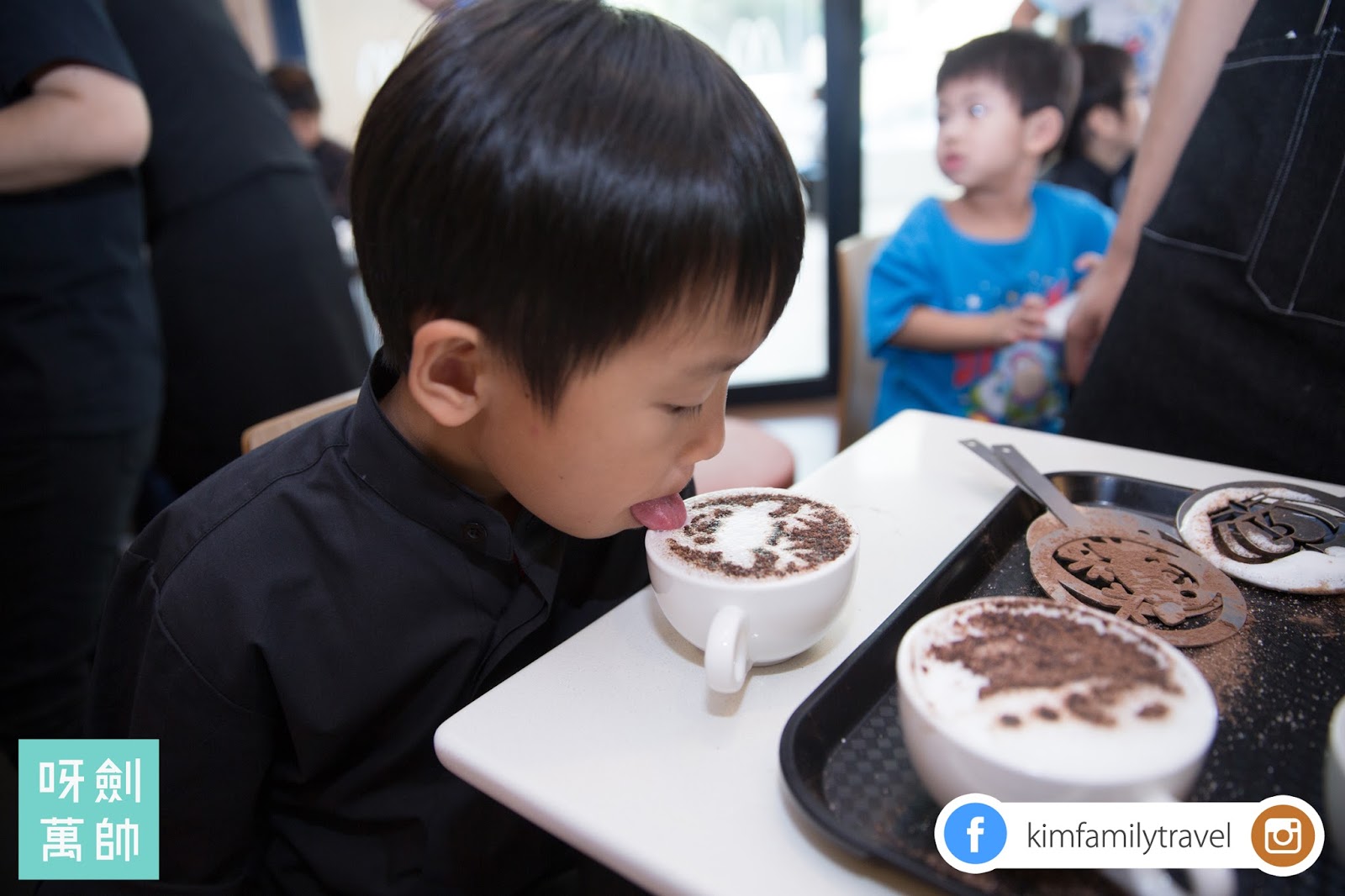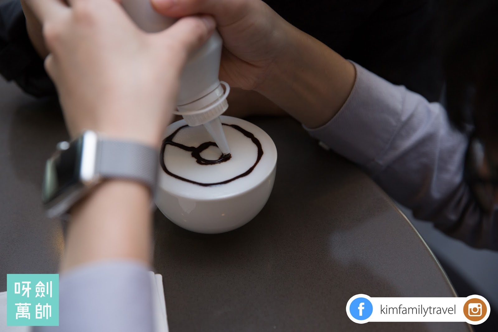 番到嚟McCafe哥哥補番同Hysan唧唧朱古力漿畫圖案喺泡沫鮮奶上,人哋幾個哥哥姐姐問佢想畫咩,佢衝口而出話要畫比卡超,即刻全場靜哂!然後McCafe哥哥話不如話精靈球啦,精靈球裡面都有比卡超㗎!跟住極不願意扁哂咀咁接受,笑到旁邊嘅姐姐肚痛