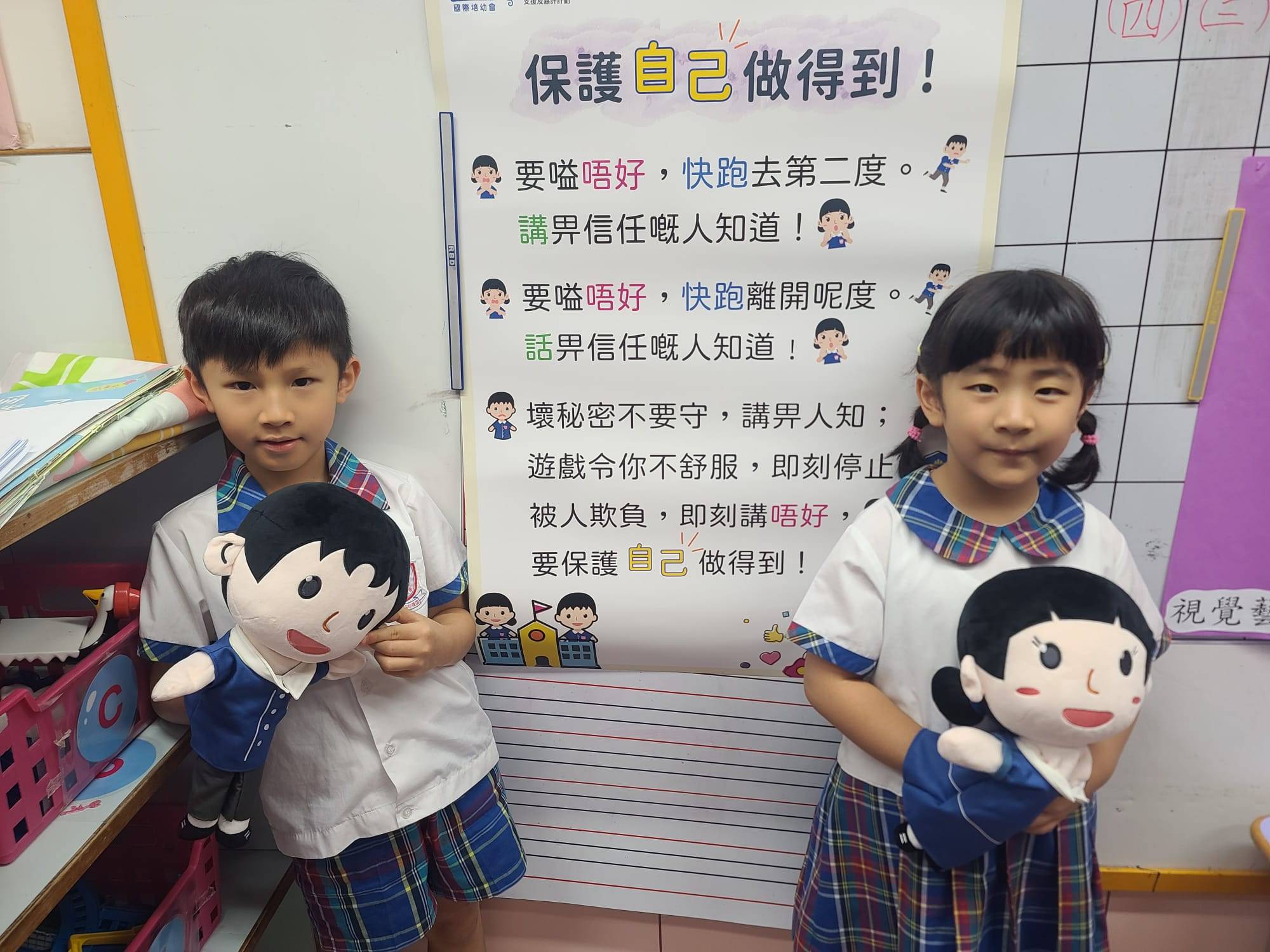 另一方面,學校透過多元化的學習活動,加深幼兒對保護自己的知識。例如在《愛錫身體我最叻》工作坊裏,小朋友透過遊戲、兒歌和輕鬆的互動中,學懂什麼是「好的接觸」與「不好的接觸」,並勇敢地表達自己的感受,學會在不舒服時大聲講「唔可以!」,在輕鬆的氛圍下幫幼兒認識身體自主權。