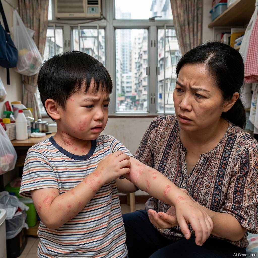 醫師診斷小朋友是濕熱內蘊、裏虛津傷造成的「濕疹」,為小朋友處方中藥,同時建議家長勤換衣物,盡量保持涼爽環境,飲食清淡。