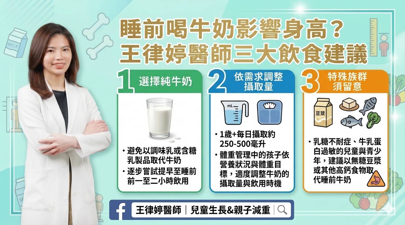 睡前喝牛奶影響身高_初日診所兒童內分泌科醫師王律婷提供三大飲食建議(圖/初日診所提供).png/raw