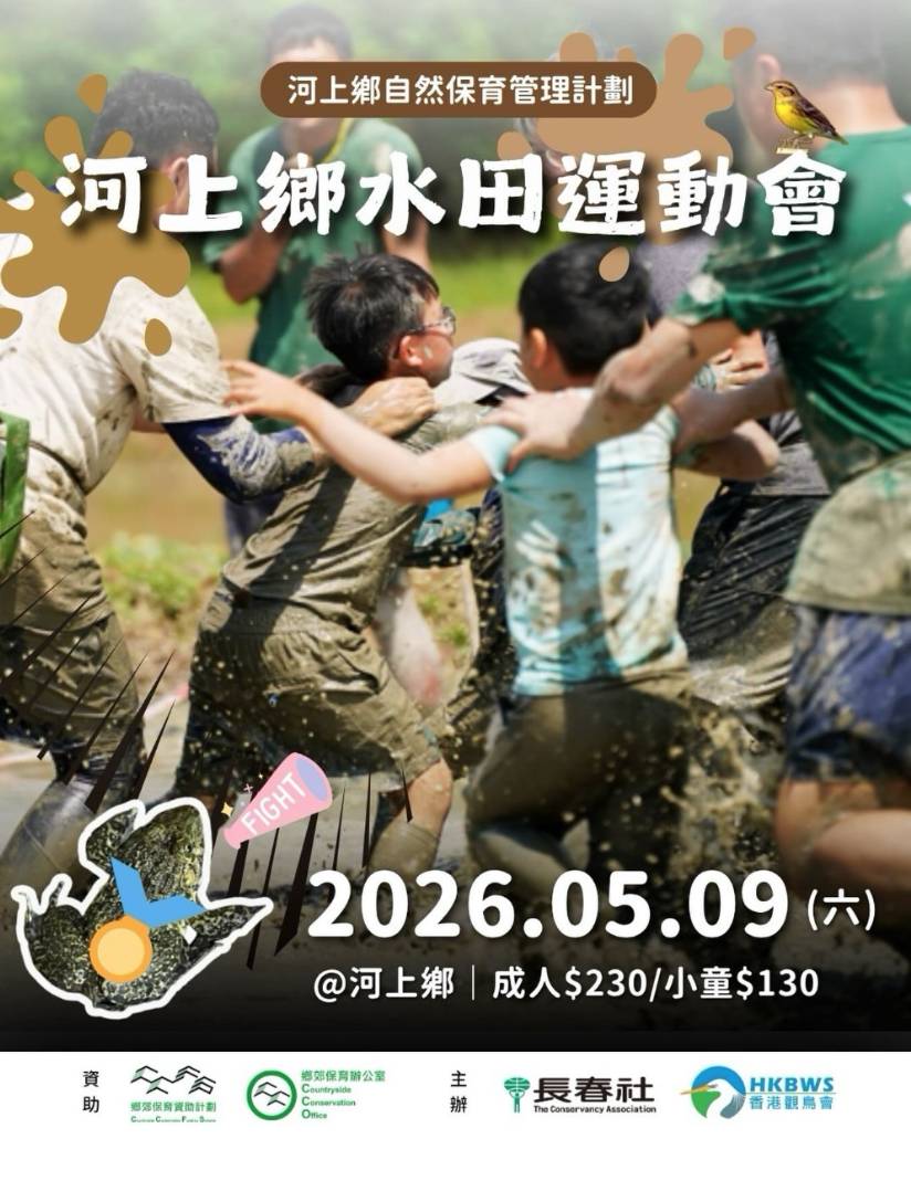 「水田運動會」由長春社與香港觀鳥會合辦,屬「河上鄉自然保育管理計劃」下的年度活動。除了競技部分,參加者也能從中認識稻田生態、濕地保育及本地農業。活動並非單純「玩完就算」,而是希望透過親身體驗,讓大小朋友更了解香港珍貴的鄉郊環境。