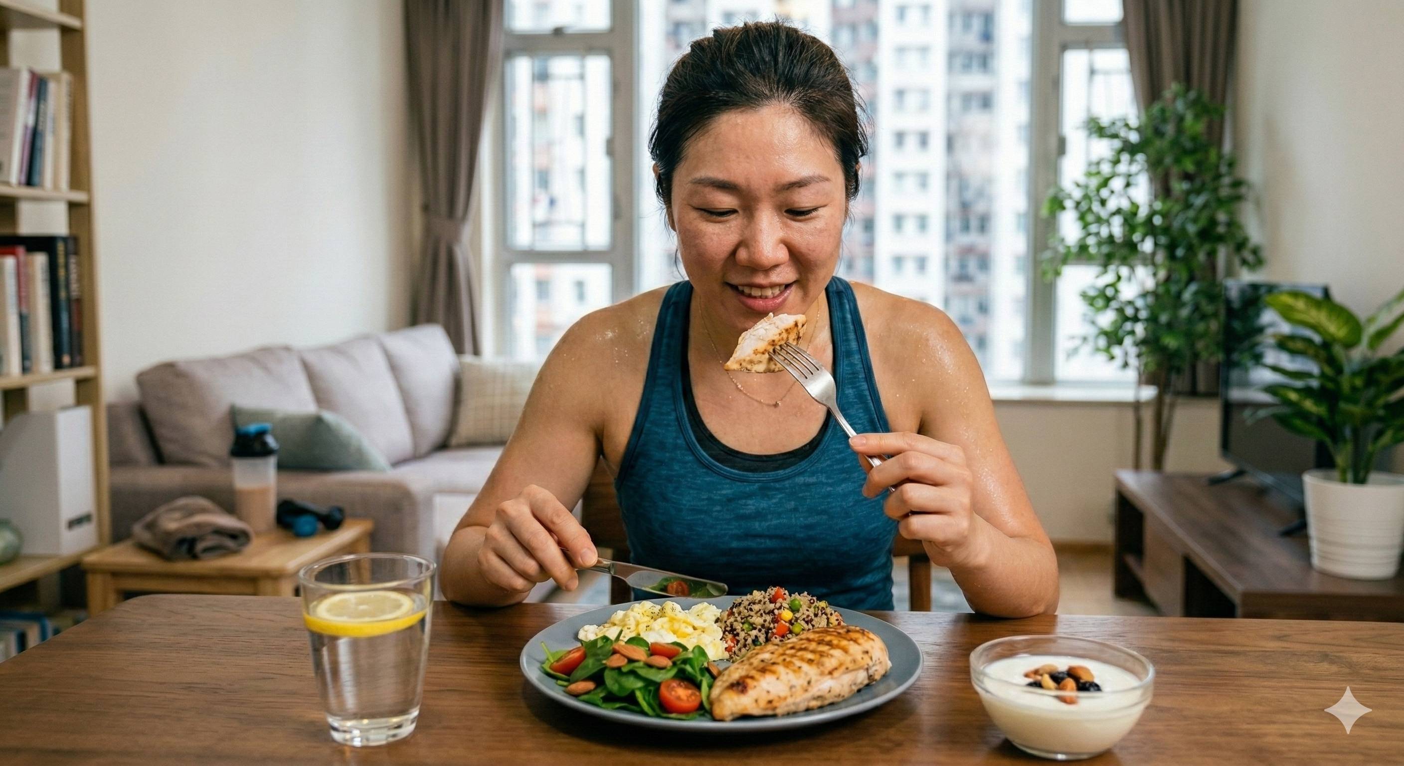 研究顯示,高蛋白飲食(佔總熱量約25%)搭配運動,12週內,相比標準蛋白飲食(佔總熱量約15%)可額外降低約2%的體脂率,並有助於維持肌肉量,避免代謝率下降。