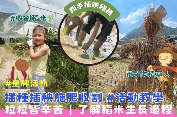 「種米小達人」活動分為兩節課程,讓參加者完整體驗稻米的生長周期。第一課為插秧及稻草人製作,第二課則是收割、打穀及泥漿池漂流活動。活動設計讓孩子們親身感受「鋤禾日當午,汗滴禾下土」的農夫生活,明白「粒粒皆辛苦」的道理。